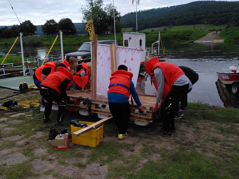 Besonders dankbar sind wir für die unkomplizierte und zuverlässige Unterstützung des DLRG Oberweser, der all unsere Floßfahrten begleitet hat. Dass dabei einige DLRG-Jugendliche ausgebildet wurden, hat uns besonders gefreut.